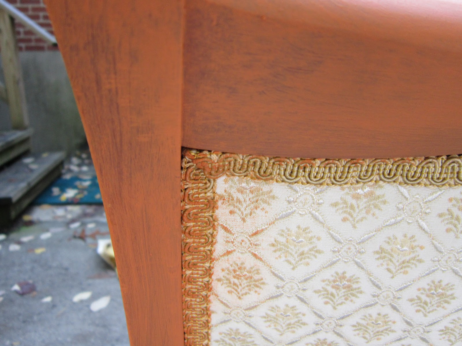 I liked doing all this so far, I can see myself reworking other old pieces of furniture. Will post more when I get the chair back. I still have to wax it...